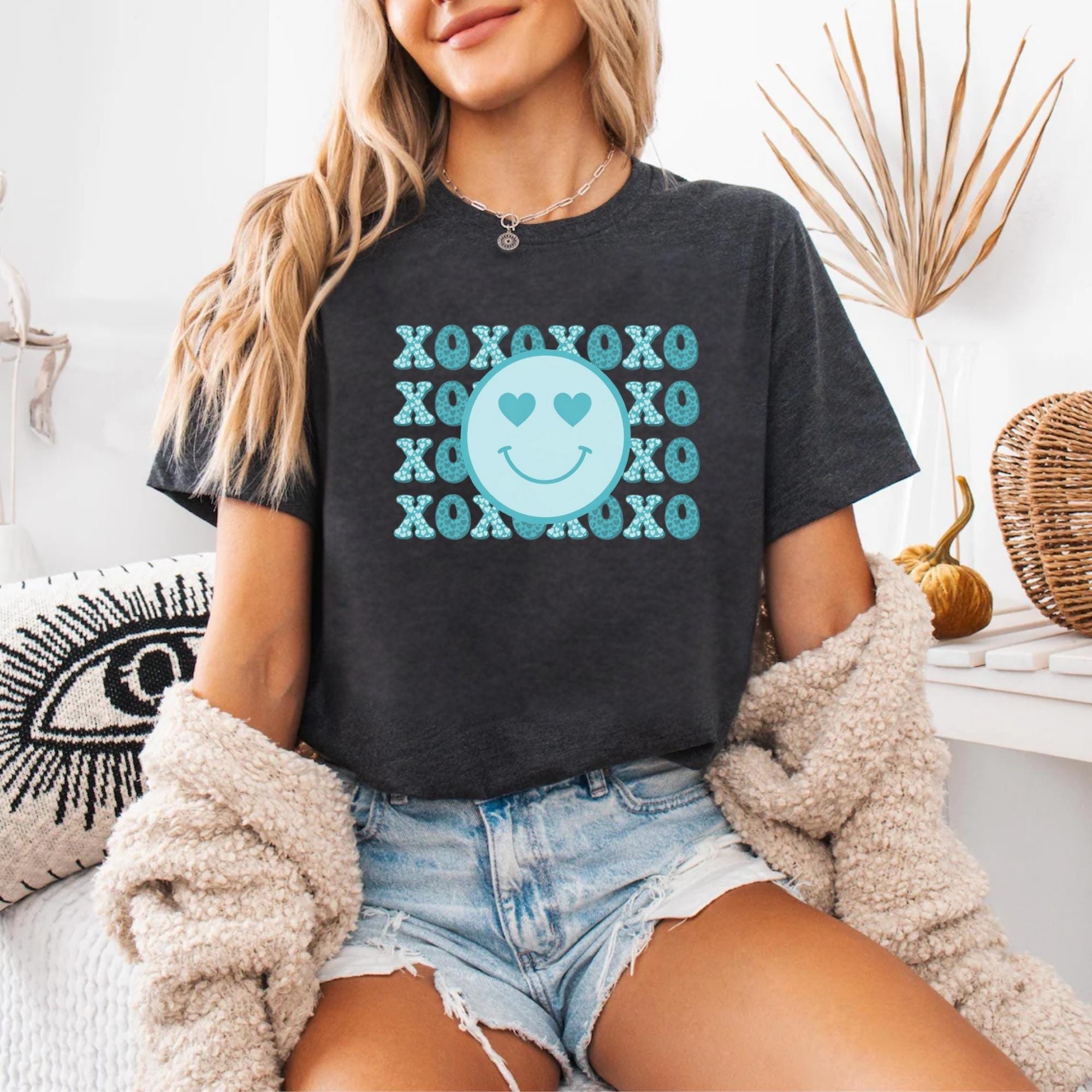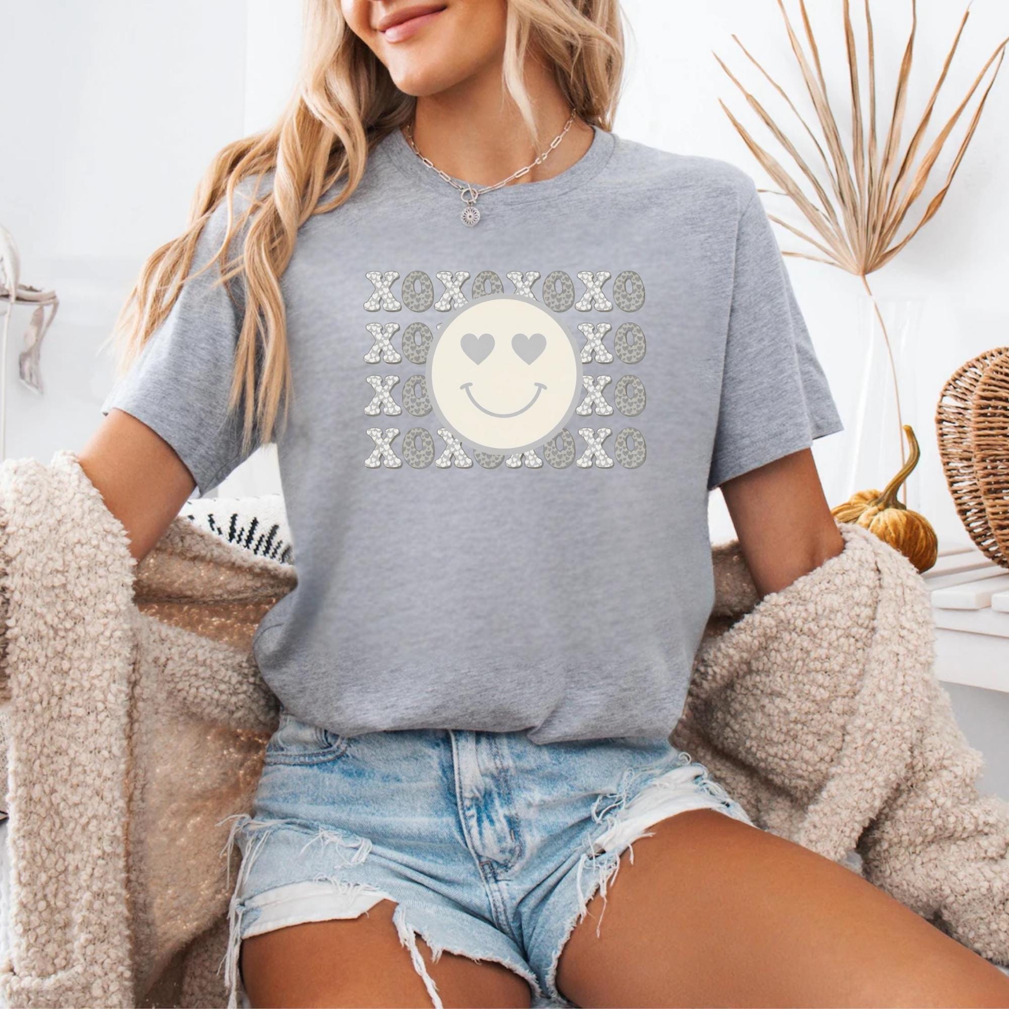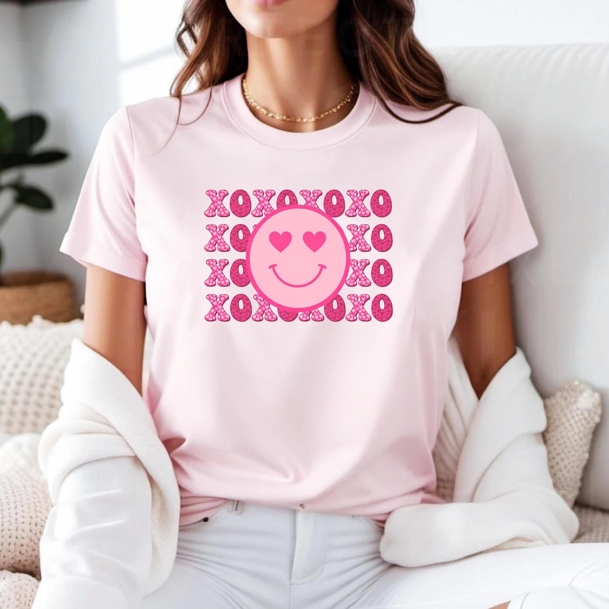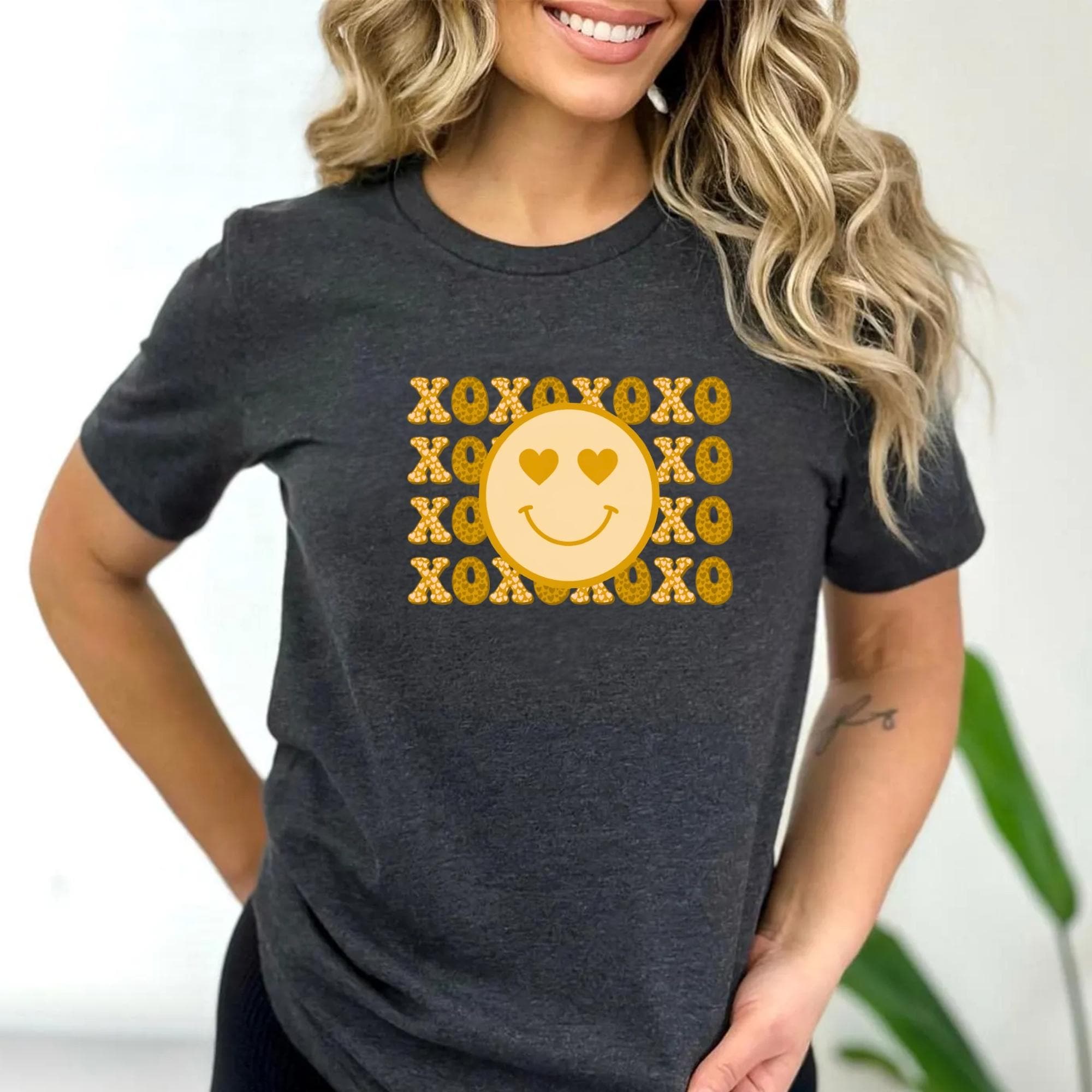 Smiley Face Shirt, Valentines Day Cotton Love XOXO Tee for Women Couples Girlfriend Wife