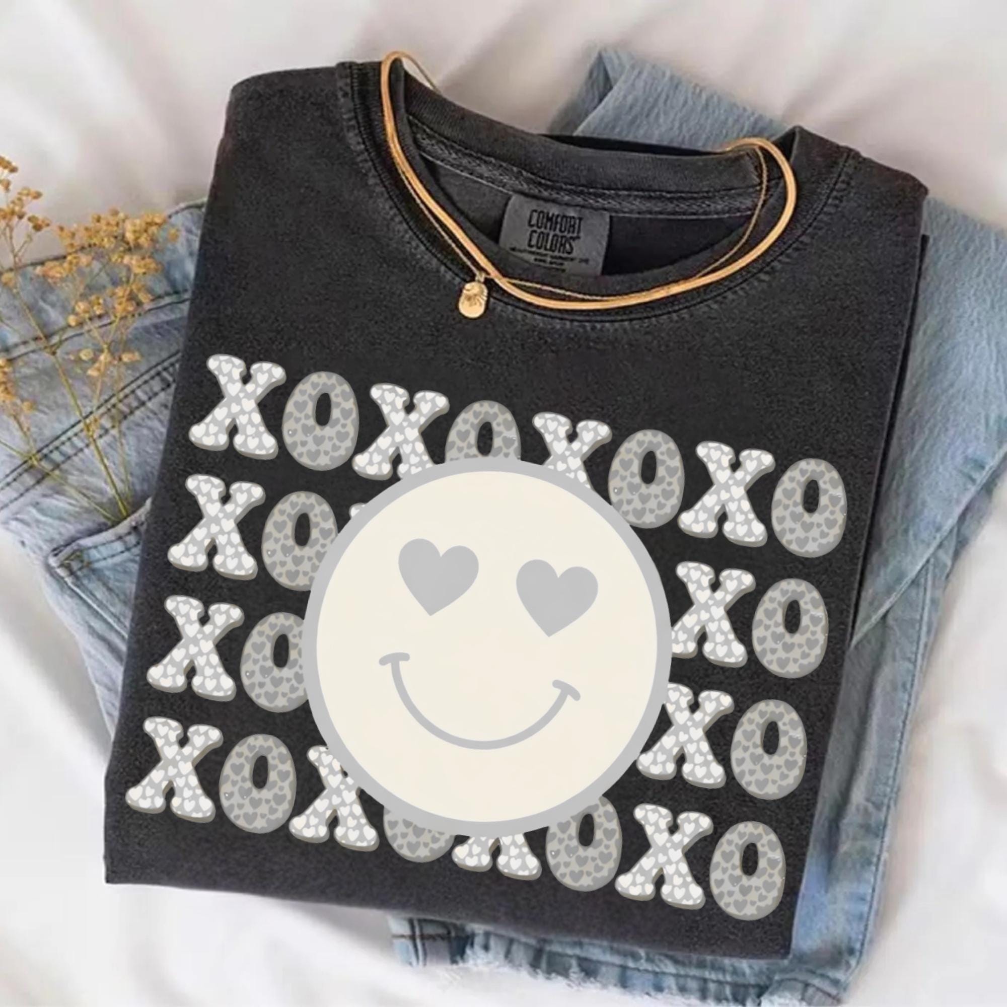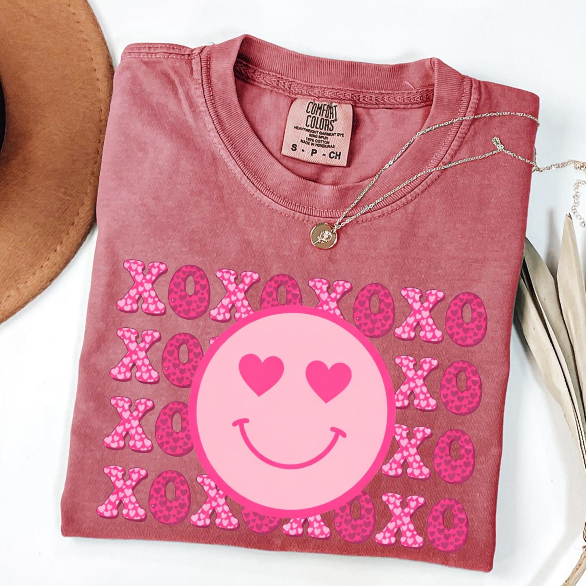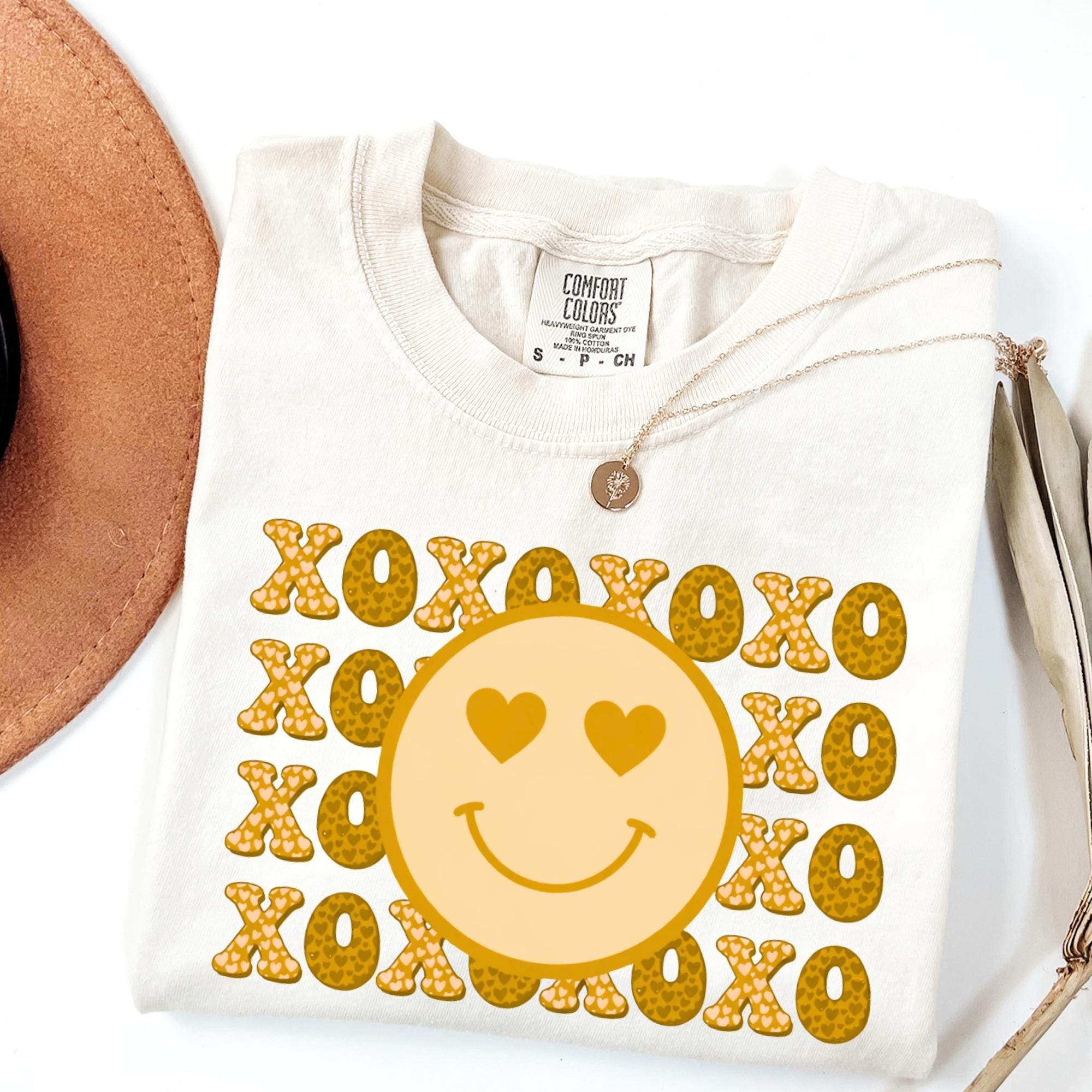 Smiley Face Comfort Colors Shirt, Valentines Day Cotton Love XOXO Tee for Women Couples Girlfriend Wife