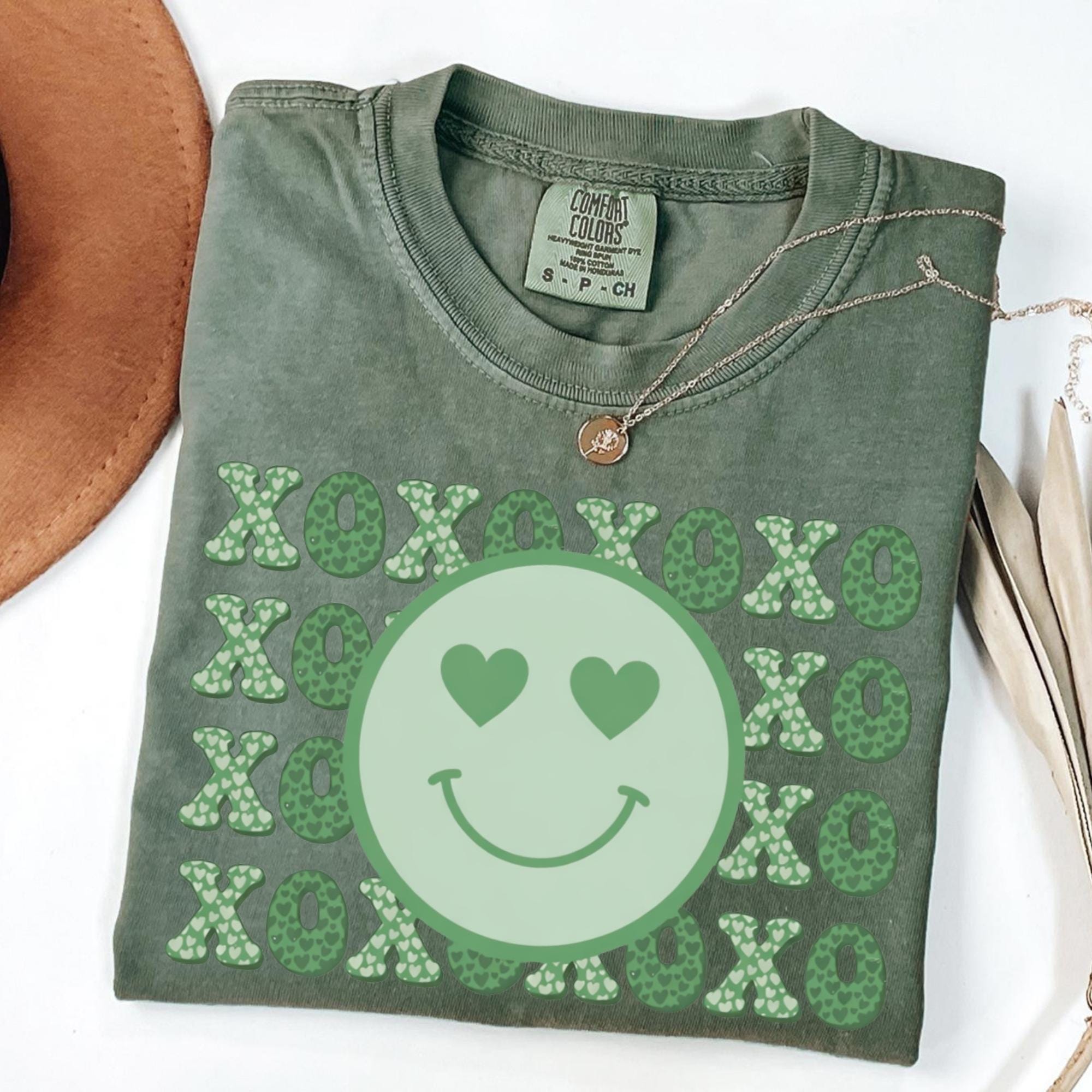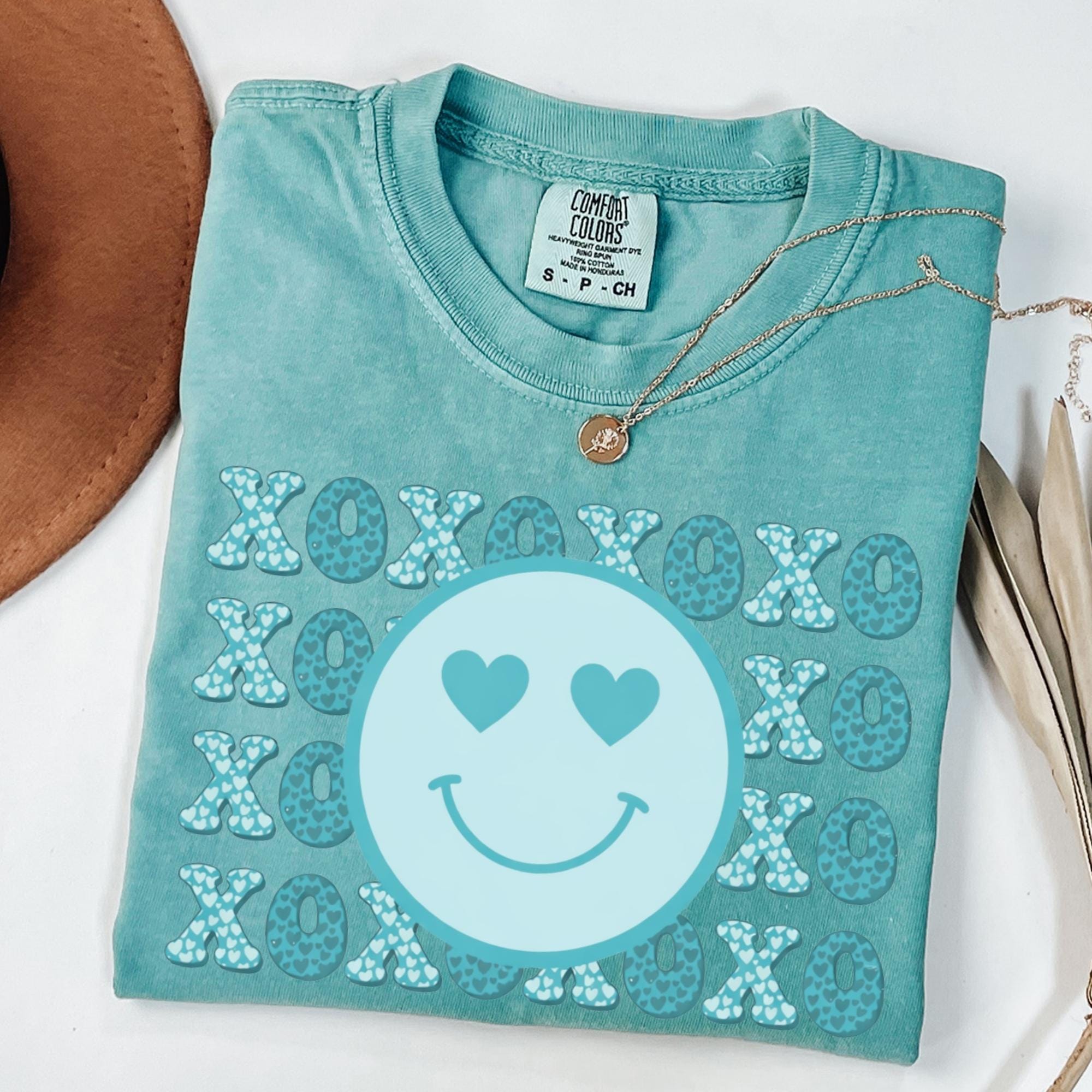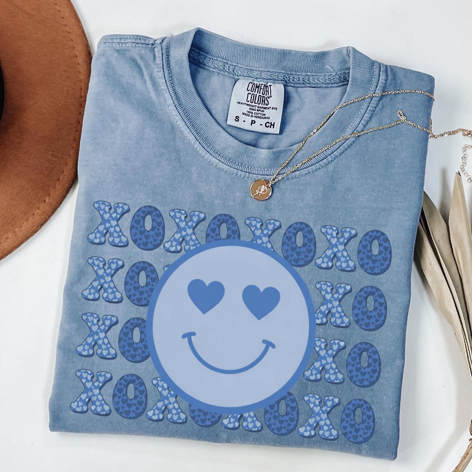 Smiley Face Comfort Colors Shirt, Valentines Day Cotton Love XOXO Tee for Women Couples Girlfriend Wife