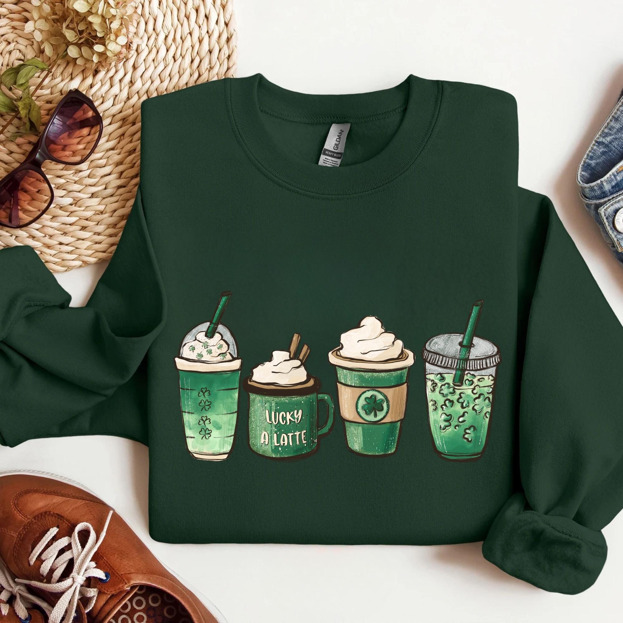 Coffee St Patricks Day Sweatshirt, Coffee Lover St Patricks Gift, Lucky Shamrock Shirt, Irish Day Gift ๐ Your Everyday Go-To โ Unique Design Unisex SweatShirt and Hoodie