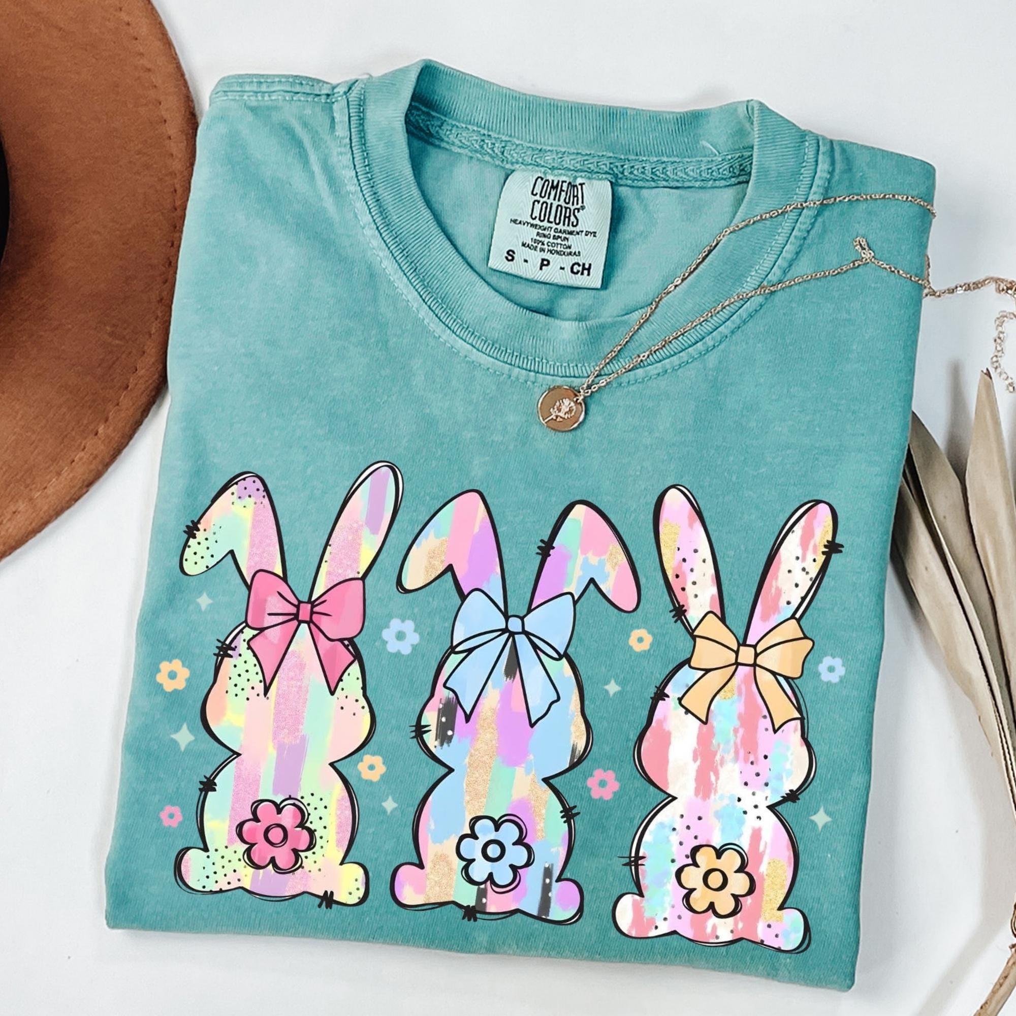 Coquette Bow Easter Bunny Comfort Colors®, Floral Bunny Shirt, Cute Easter Shirt for Women, Easter Crewneck, Rabbit Sweatshirt, Easter Gift