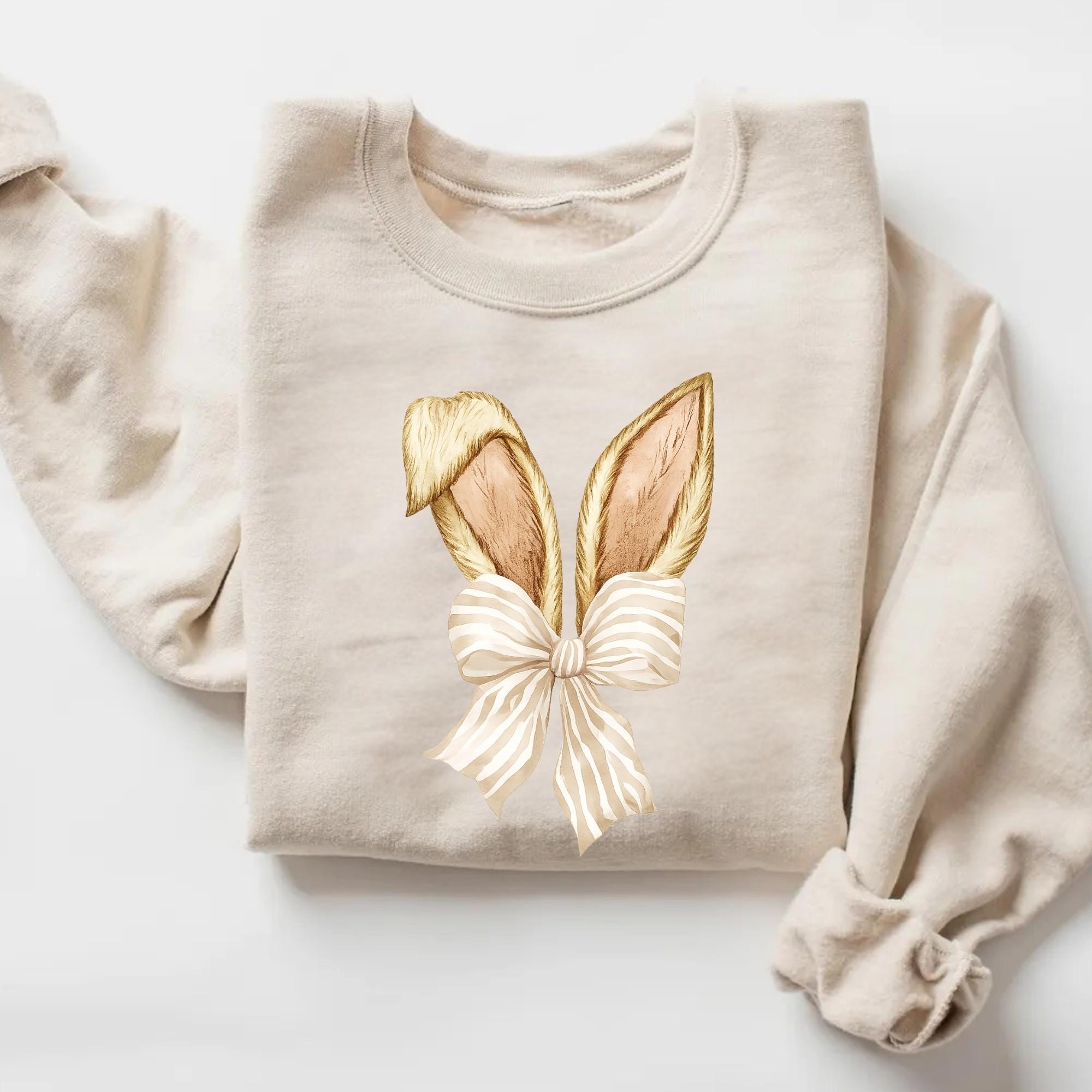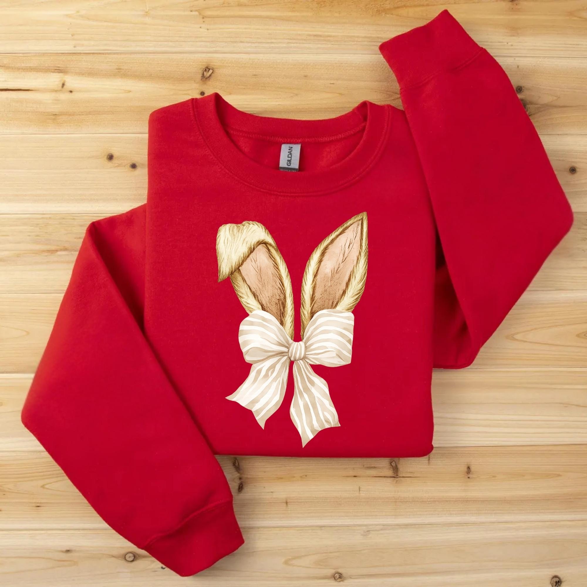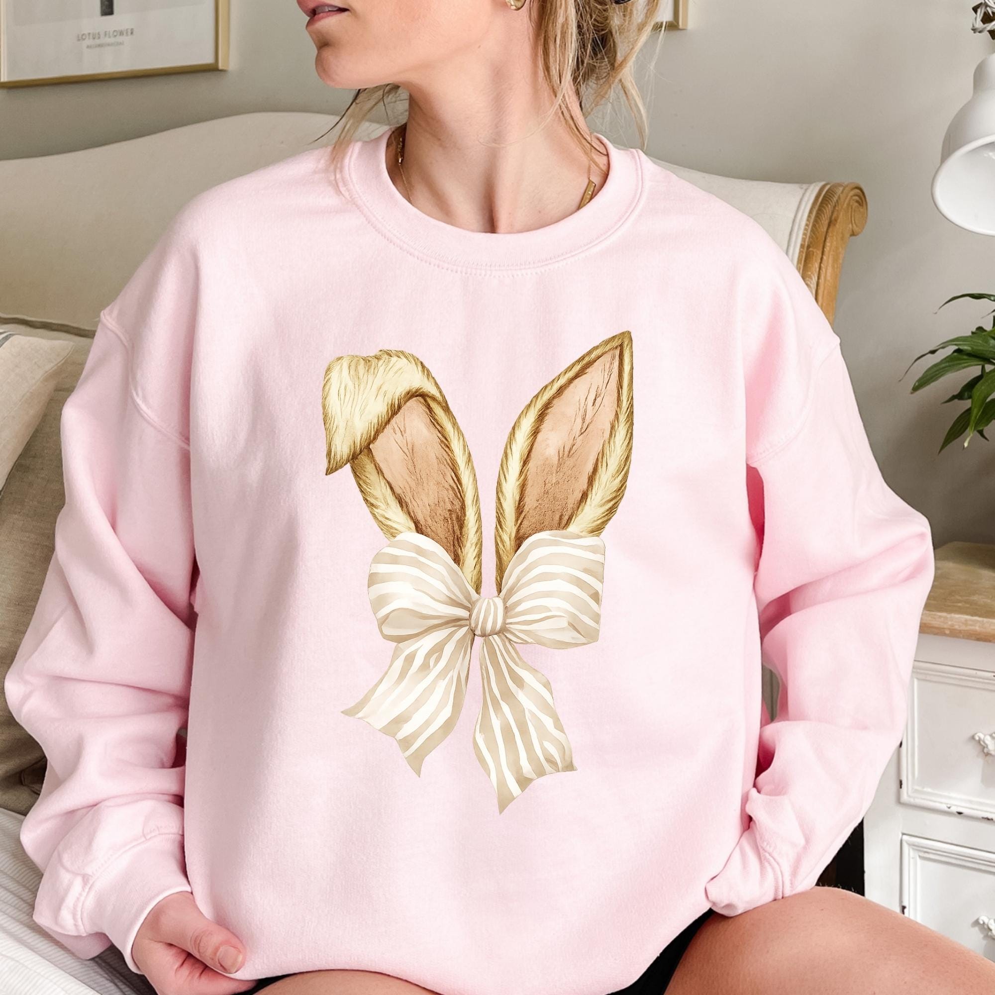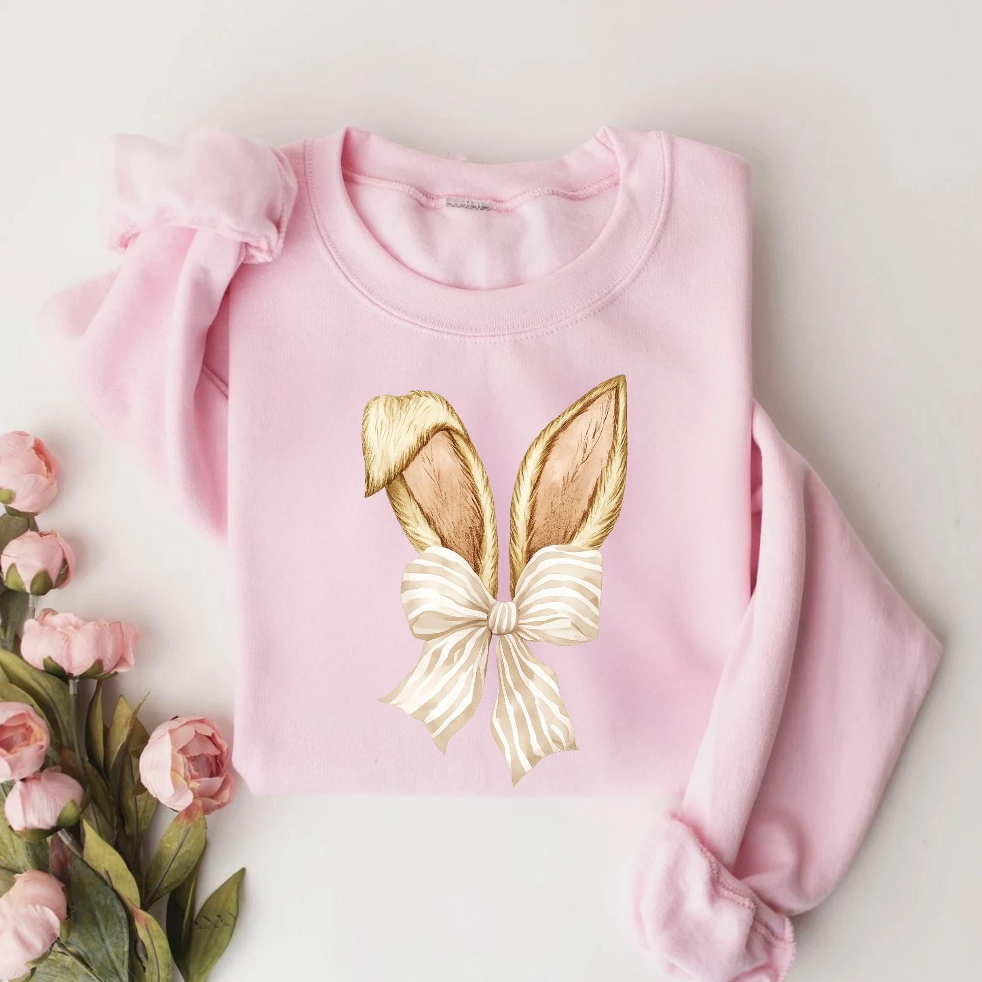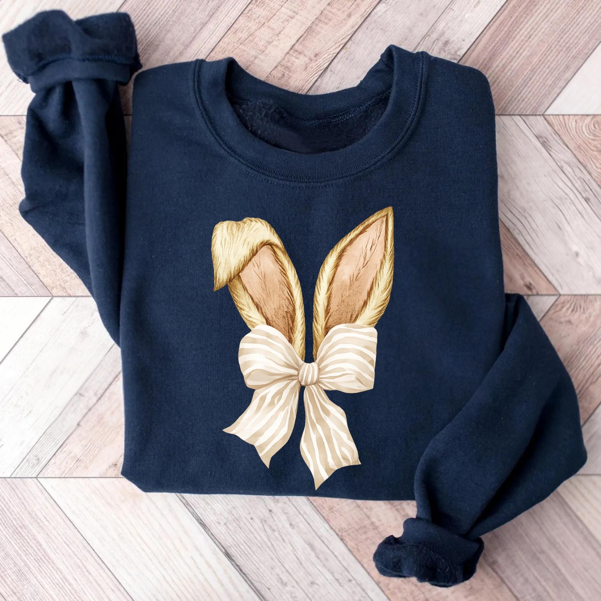 Coquette Bunny Tee, Bow and Ears Design, Pastel Spring Sweatshirt