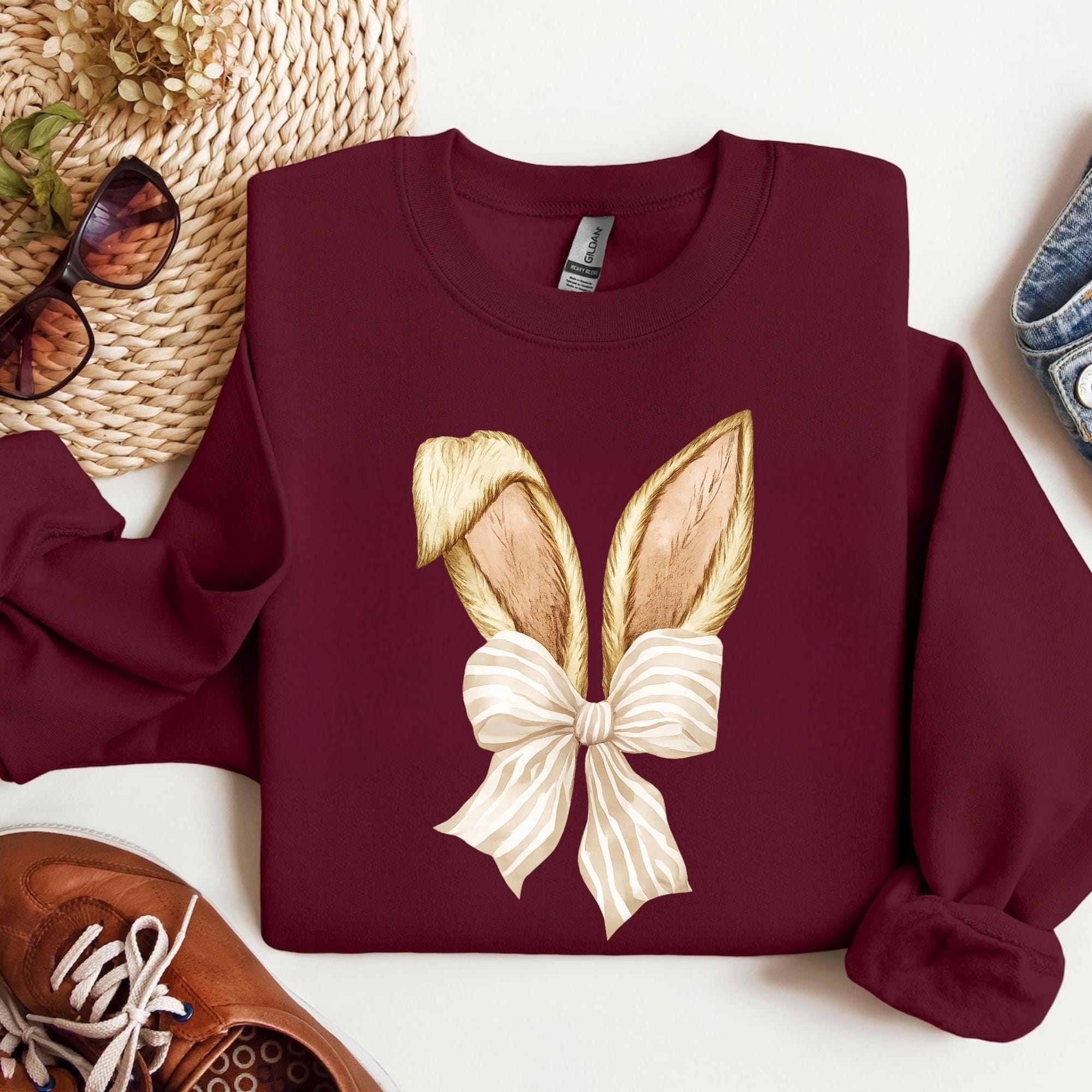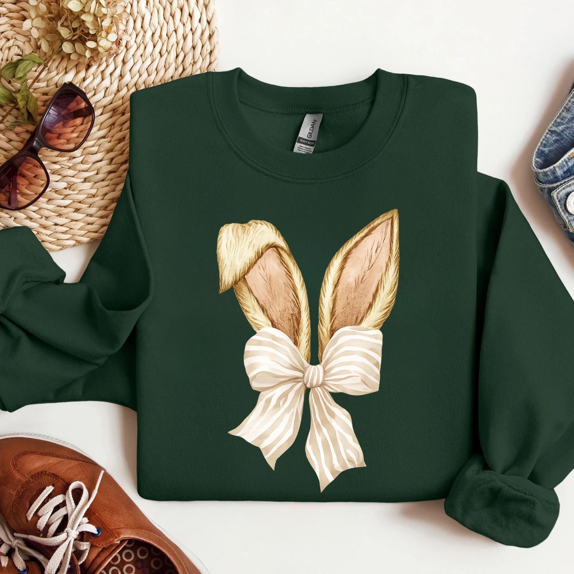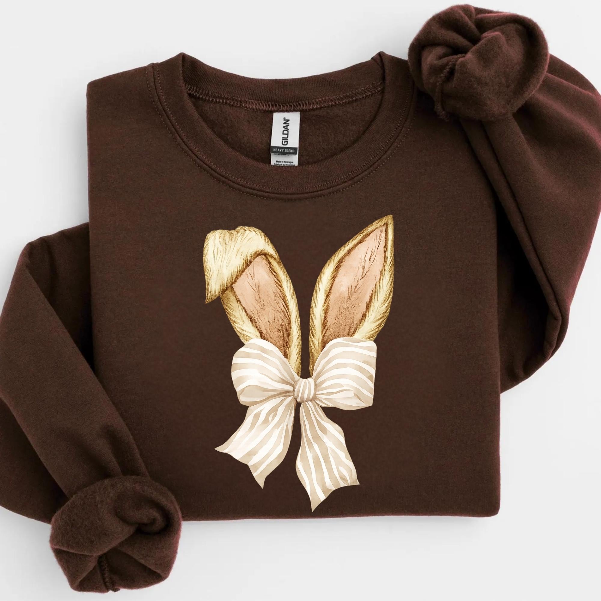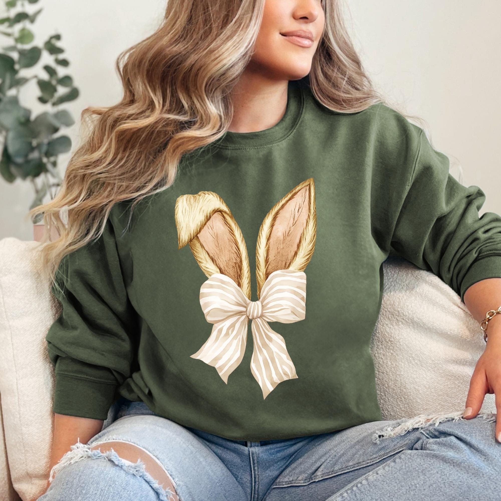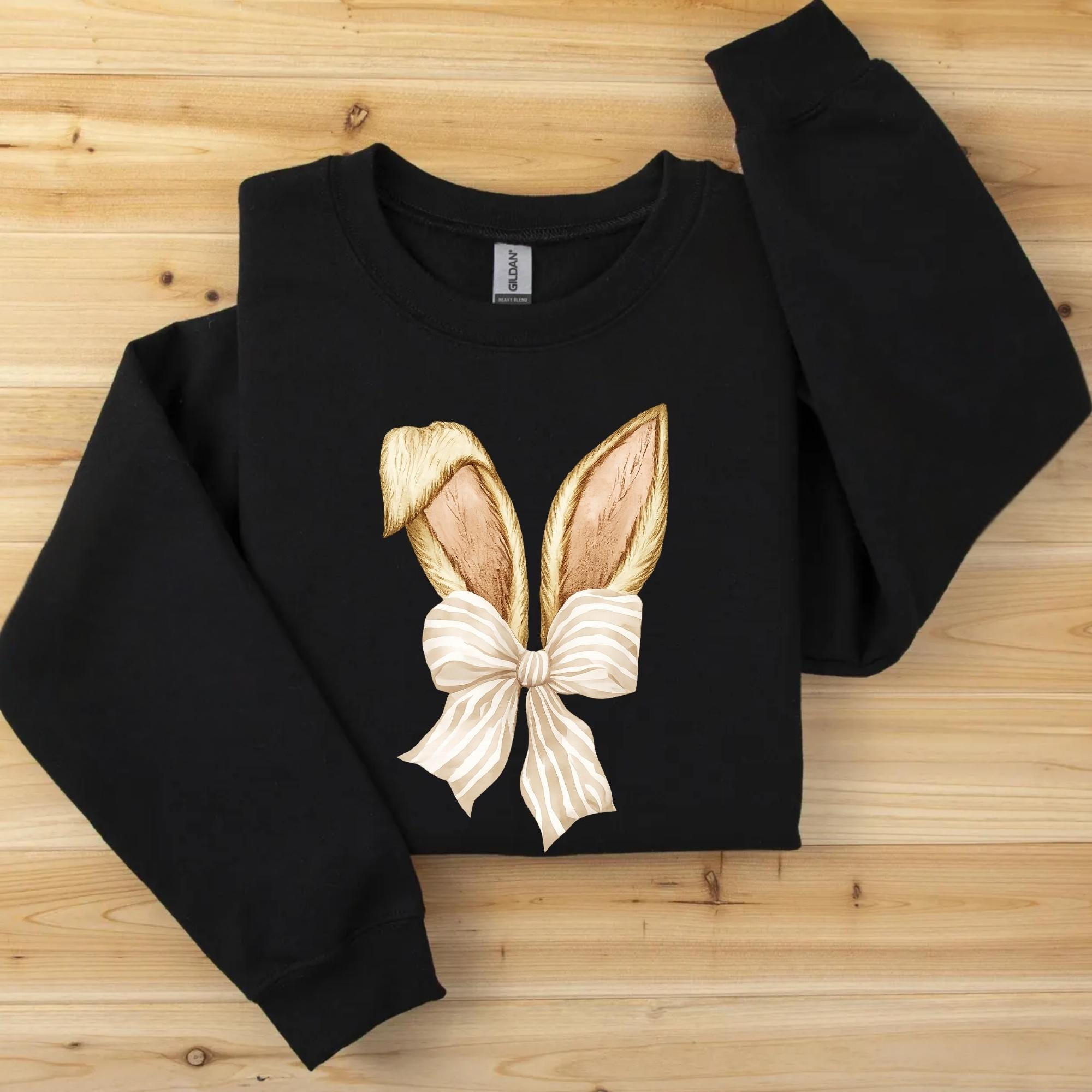 Coquette Bunny Tee, Bow and Ears Design, Pastel Spring Sweatshirt
